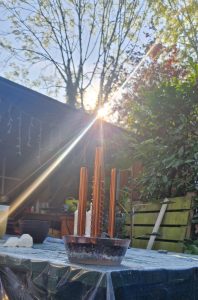 Janua en de Ankh werken zoals ze dat zelf bepalen terwijl ik buiten mooie dingen maak. Er zijn nog veel meer energieën aanwezig; dat zie je aan de lichtbollen in de tuin. Mijn doelstelling is geheel voor de aarde en omdat we één zijn met die aarde heeft iedereen daar profijt van. Dus jouw Chembuster zal jou hetzelfde brengen als de aarde, nl. liefde, licht, harmonie, overvloed, reiniging en bescherming. Ook de mensen in je omgeving zullen dit mee gaan krijgen als je ze helpt. Zo wordt het een netwerk van licht en liefde dat zich nu snel verspreid over de aarde.